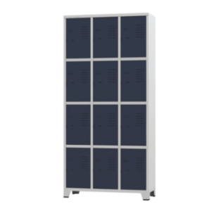 O Roupeiro GRA 1/12 é prático e versátil. Possui 12 portas com fechadura conjugada opcional, pitão para cadeado, além de tratamento especial da superfície e pés com sapatas plásticas protetoras.