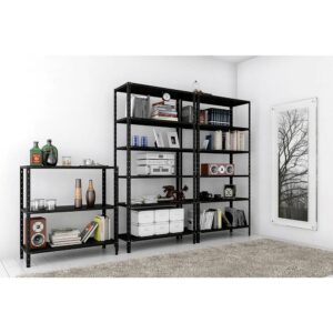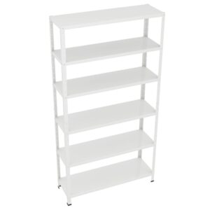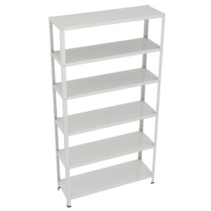A Estante Dupla Flex possui 6 bandejas reguláveis e super resistentes. Também possui pés com sapatas plásticas de proteção. Prática e versátil, é de fácil montagem, com a simples colocação de porcas e parafusos unindo as bandejas às colunas.