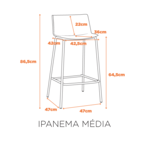 Descrição: A Banqueta Ipanema é moderna, versátil e resistente, com um assento em polipropileno para conforto e uma base de aço pintada na mesma cor do assento, ideal para diversos ambientes.
