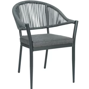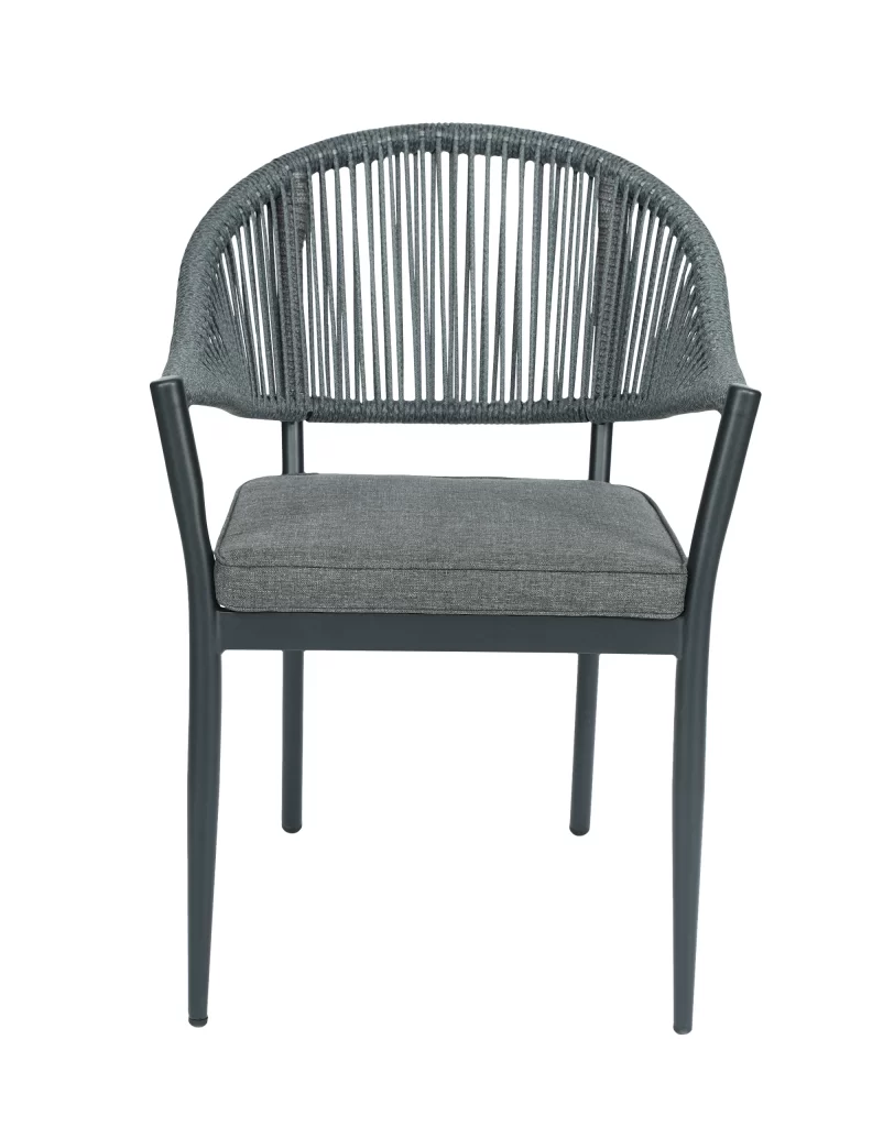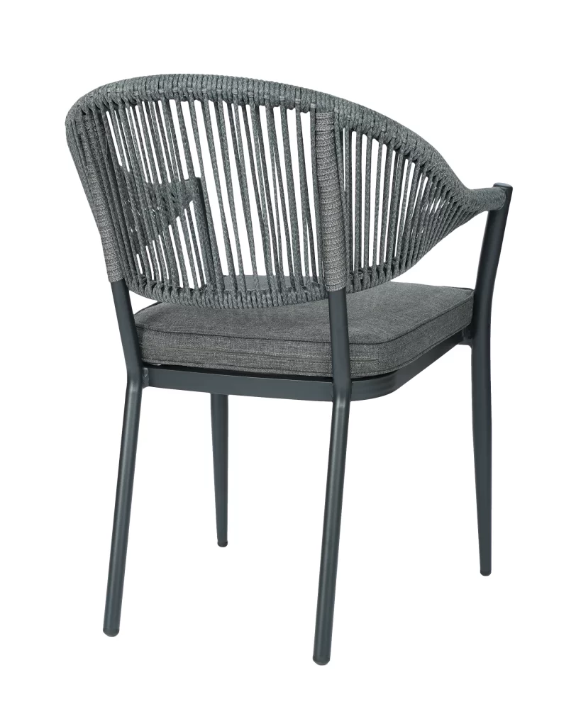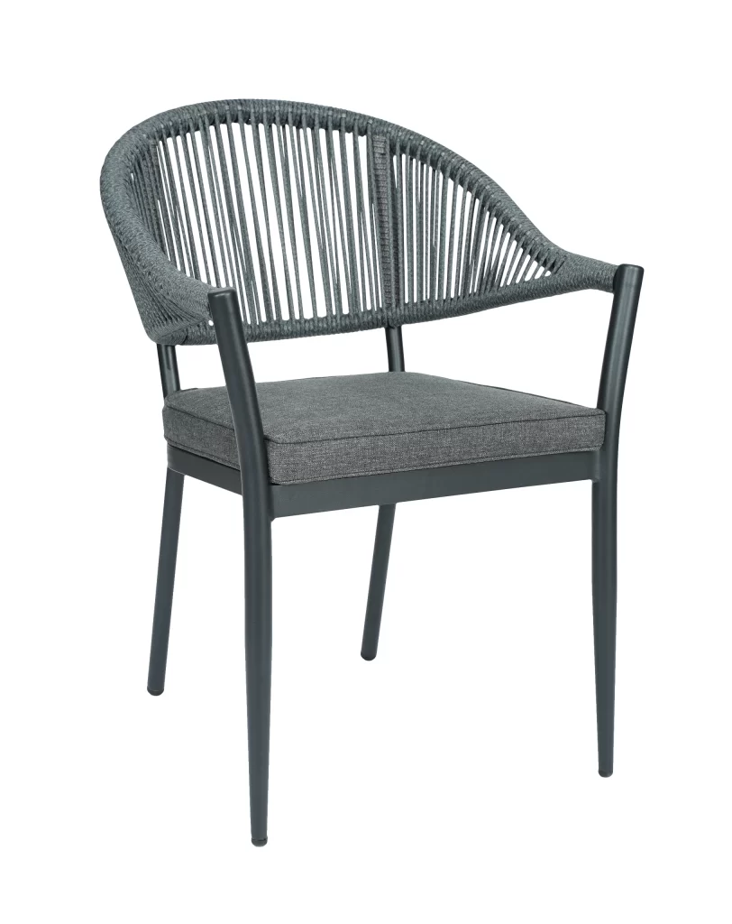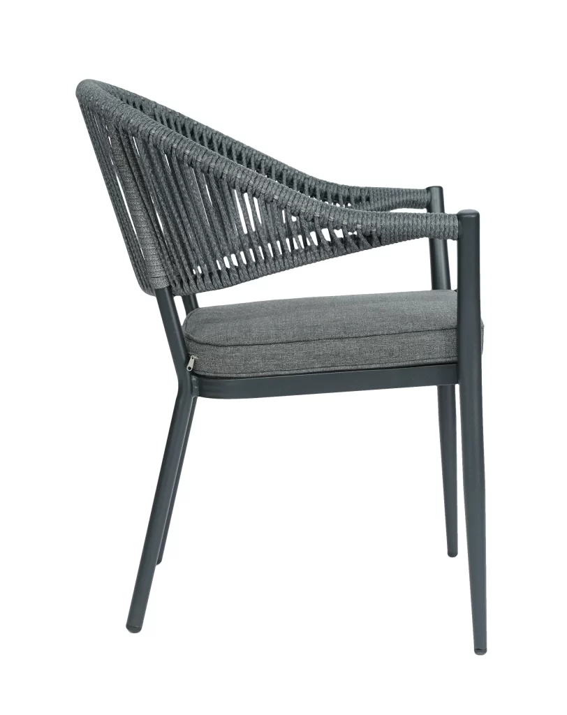 A cadeira Amalfi é ideal para uso externo, unindo sofisticação e praticidade. Com estrutura resistente, encosto em corda náutica que adiciona leveza e um assento estofado em tecido claro, oferece conforto e estilo para compor ambientes elegantes e modernos.