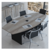 Mesa fabricada em MDP 15 mm, pés de aço com duas barras na vertical de cada lado, aumentando assim seu reforço e com preenchimento de madeira no seu interior, pintura eletrostática, disponíveis em duas cores