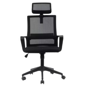 Poltrona de alta robustez, assento e encosto estruturados em compensado multilaminado de alta espessura, reforçados com elementos metálicos e estofados com espuma flexível de poliuretano, moldada, de alta densidade, alta resiliência e isenta de CFC. Braços e base em tubos de aço de secção elíptica, com acabamento cromado. Ajuste de altura do assento por meio de pistõ à Gás, conforme DIN 4550, Classe 04, com bucha de metal para reforço no curso. Rodízios de duplo giro injetados em poliamida, de alta performance.